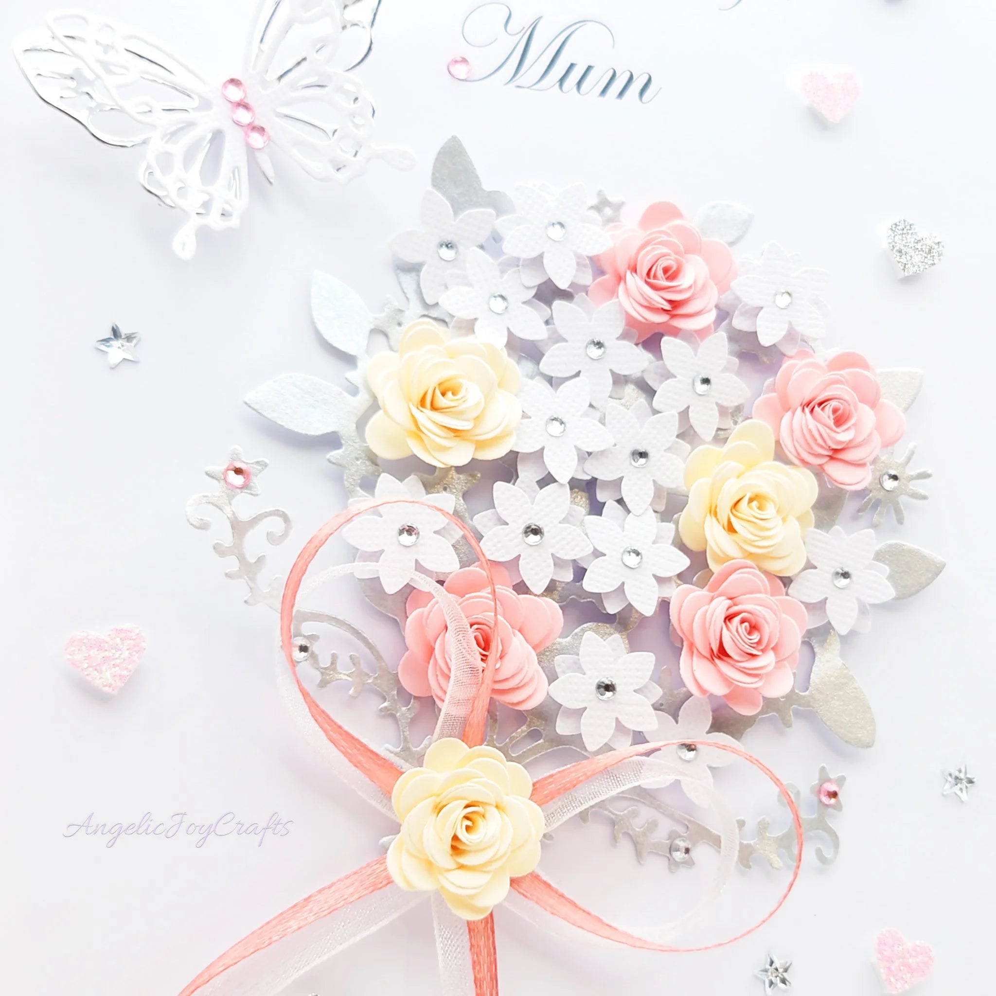 Handmade Personalised 3D Birthday Card with Flowers & Bow + Complimentary Gift Box | Mother's Day