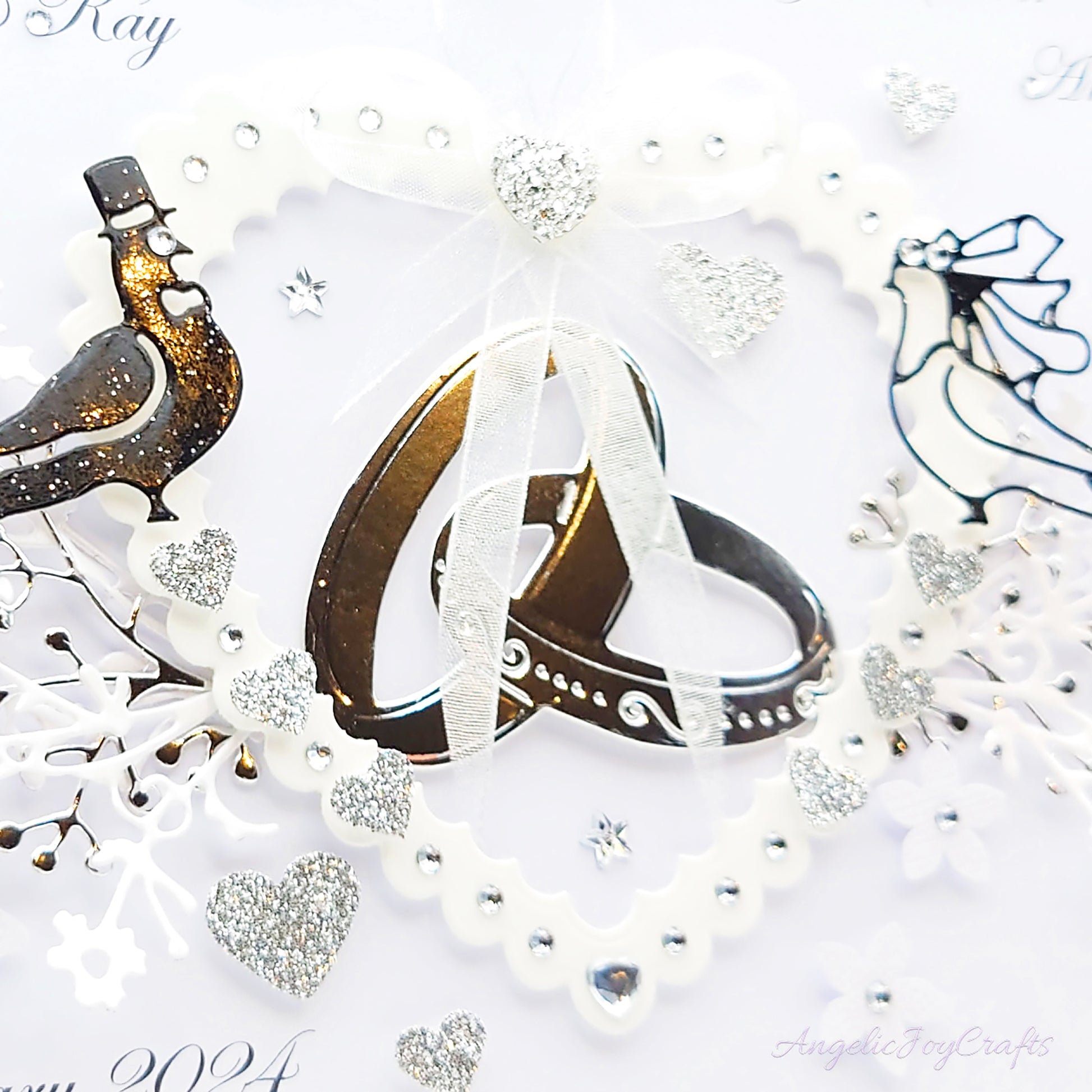 Handmade Personalised 3D Anniversary Card with Floral Heart & Dove Couple + Complimentary Gift Box | Anniversary | Wedding | Engagement