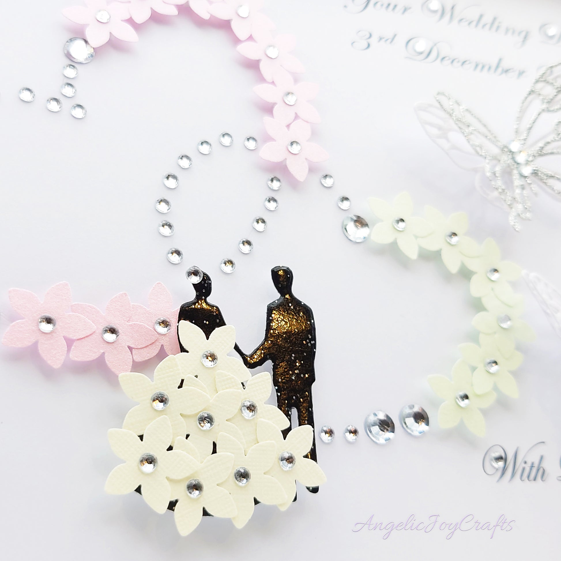 Handmade Personalised 3D Anniversary Card with Floral Hearts & Couple + Complimentary Gift Box | Anniversary | Wedding | Engagement
