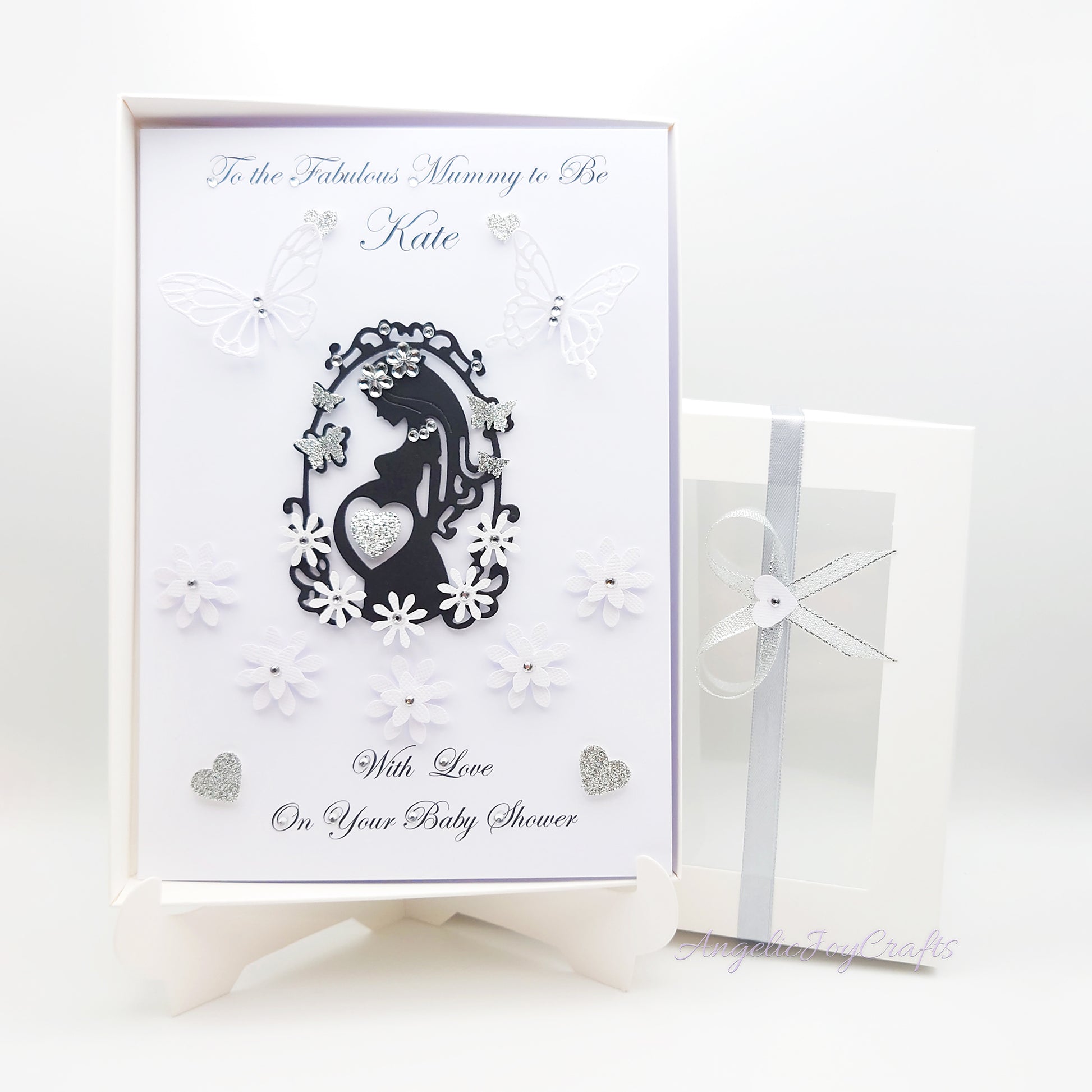 Handmade Personalised 3D Baby Shower Card with a Mother, Flower & Butterflies + Complimentary Gift Box | Baby Shower | Child Birthday | Baby Born | Birthday