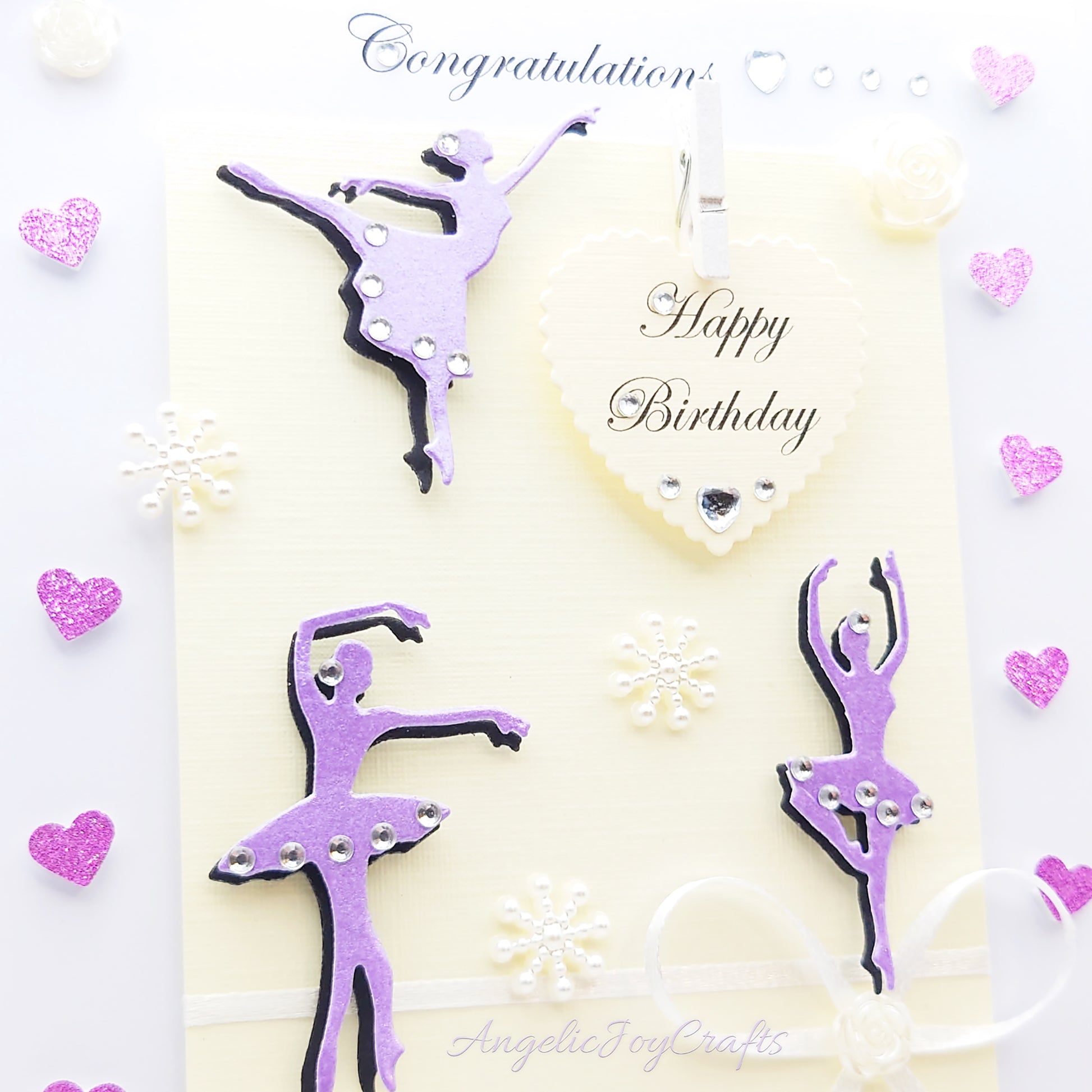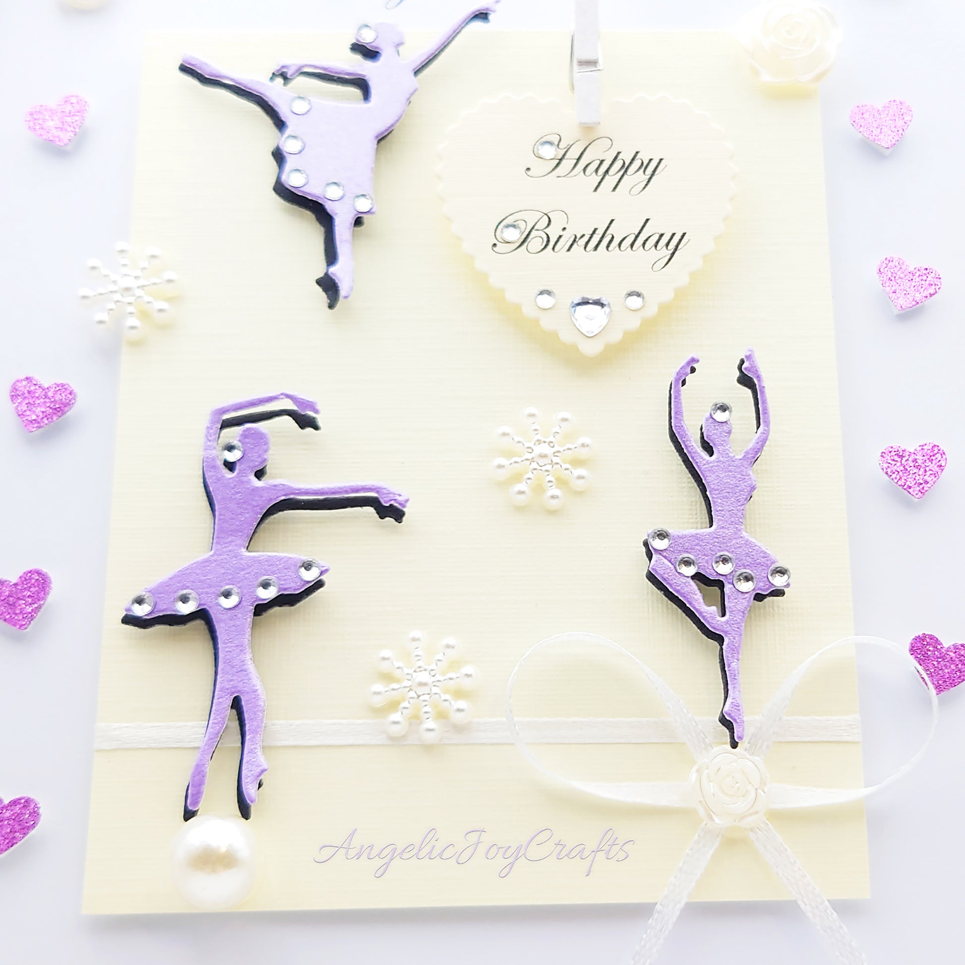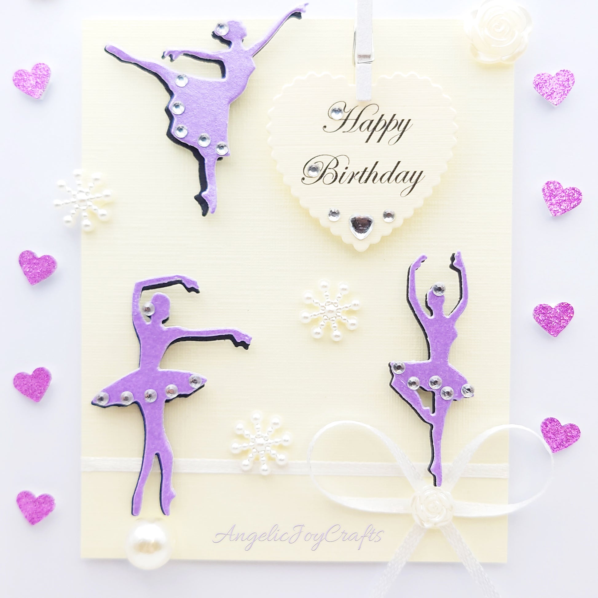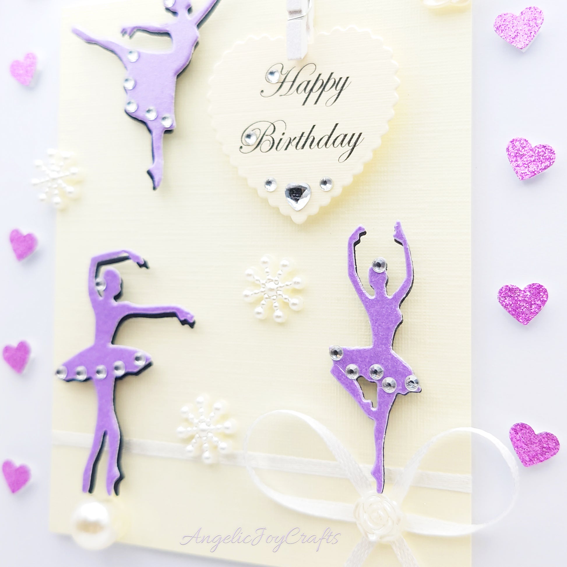 Handmade Personalised 3D Birthday Card with Ballerinas, Bows & Hearts + Complimentary Gift Box | Birthday | Mother's Day