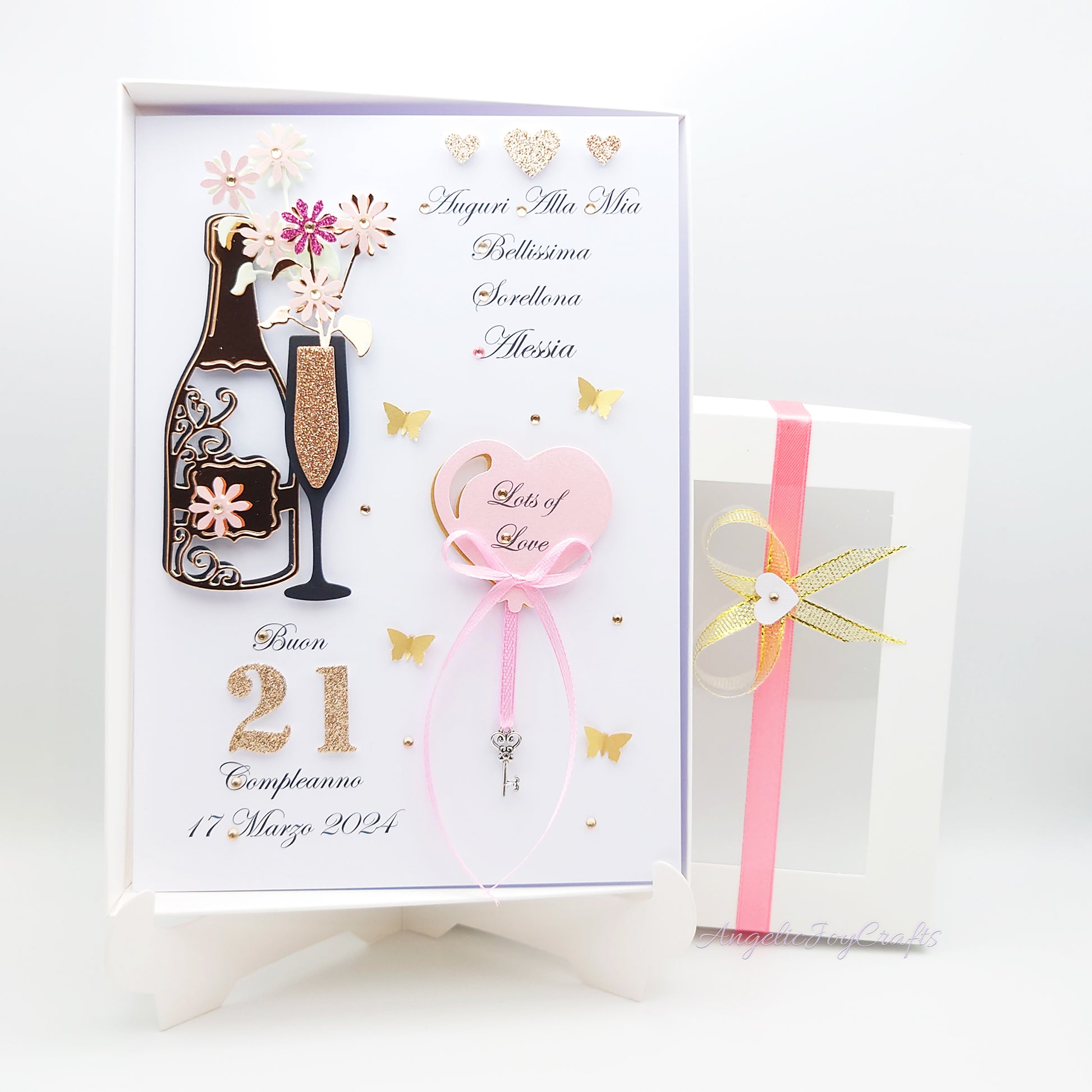 Handmade Personalised 3D Birthday Card with Champagne & Tree of Life Charm + Complimentary Gift Box | Birthday | Mother's Day