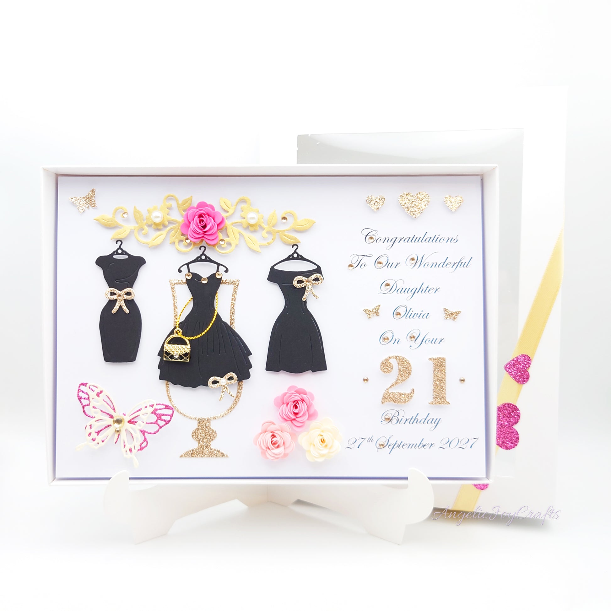 Handmade Personalised 3D Birthday Card with Cocktail Dresses and Flowers + Complimentary Gift Box | Birthday | Mother's Day
