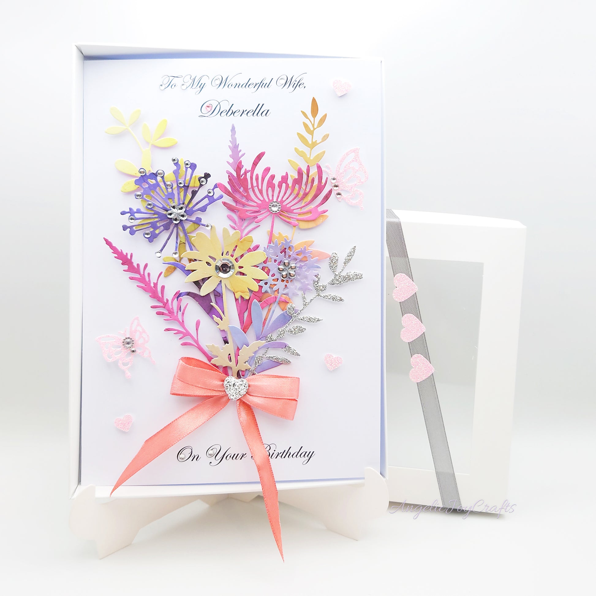 Handmade Personalised 3D Birthday Card with Colourful Bouquet & Bow + Complimentary Gift Box | Birthday | Mother's Day