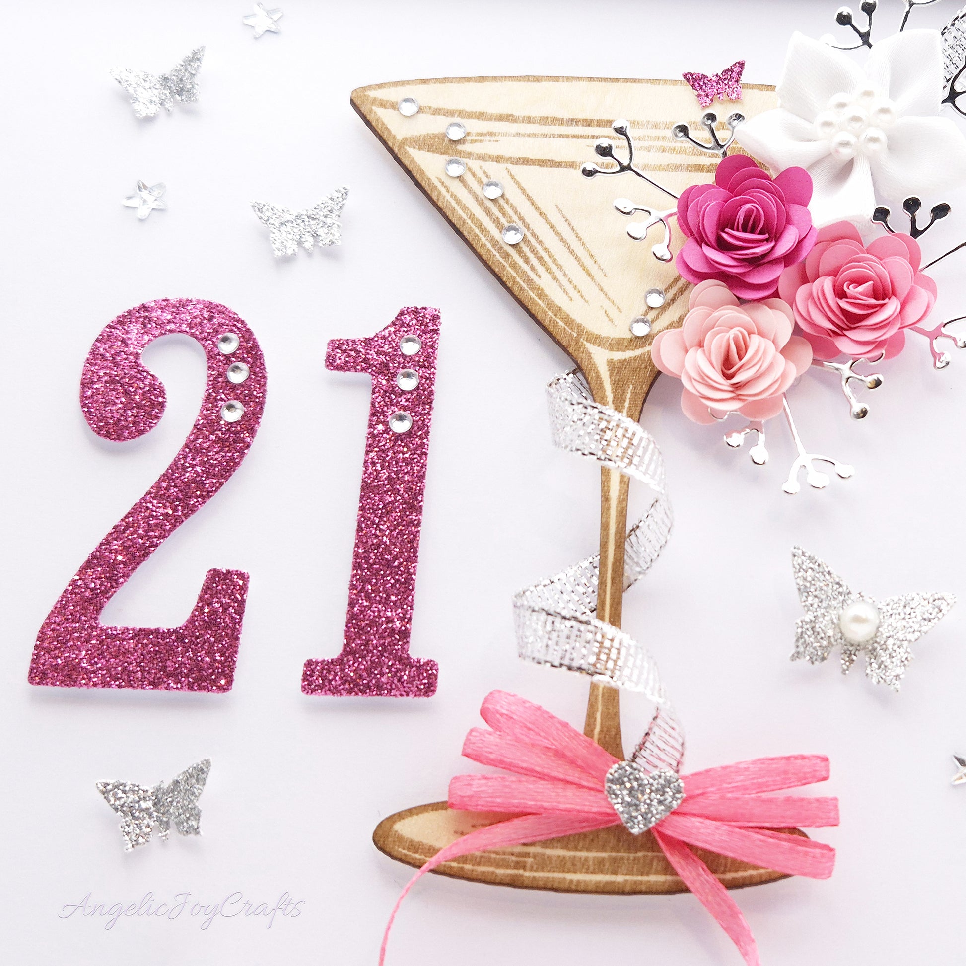 Handmade Personalised 3D Birthday Card with Martiny Glass & Flowers + Complimentary Gift Box | Birthday | Mother's Day