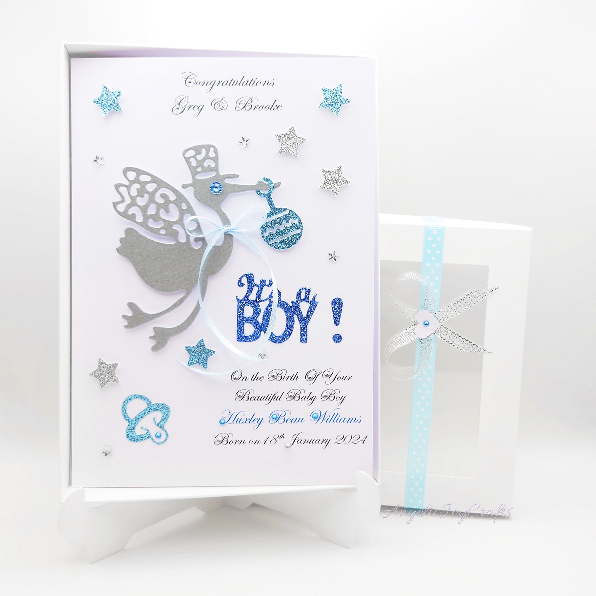 Handmade Personalised 3D Child Birthday Card with a Stork + Complimentary Gift Box | Baby Shower | Child Birthday | Baby Born | Birthday
