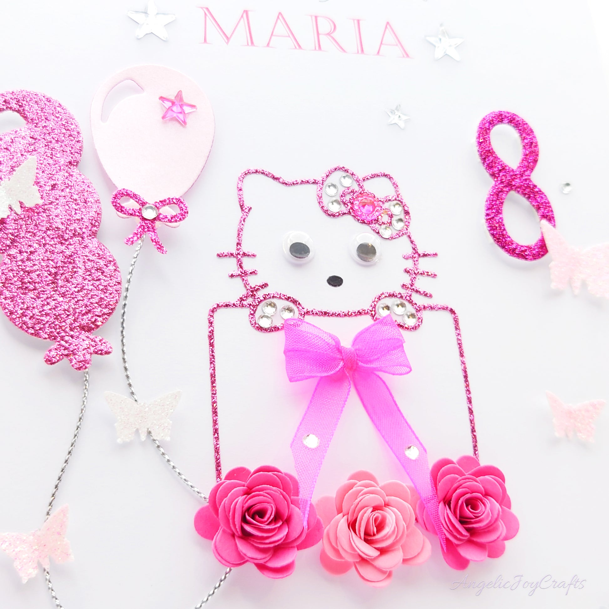 Handmade Personalised 3D Child Birthday Card with Kitty, Baloons & Flowers + Complimentary Gift Box | Baby Shower | Child Birthday | Baby Born | Birthday