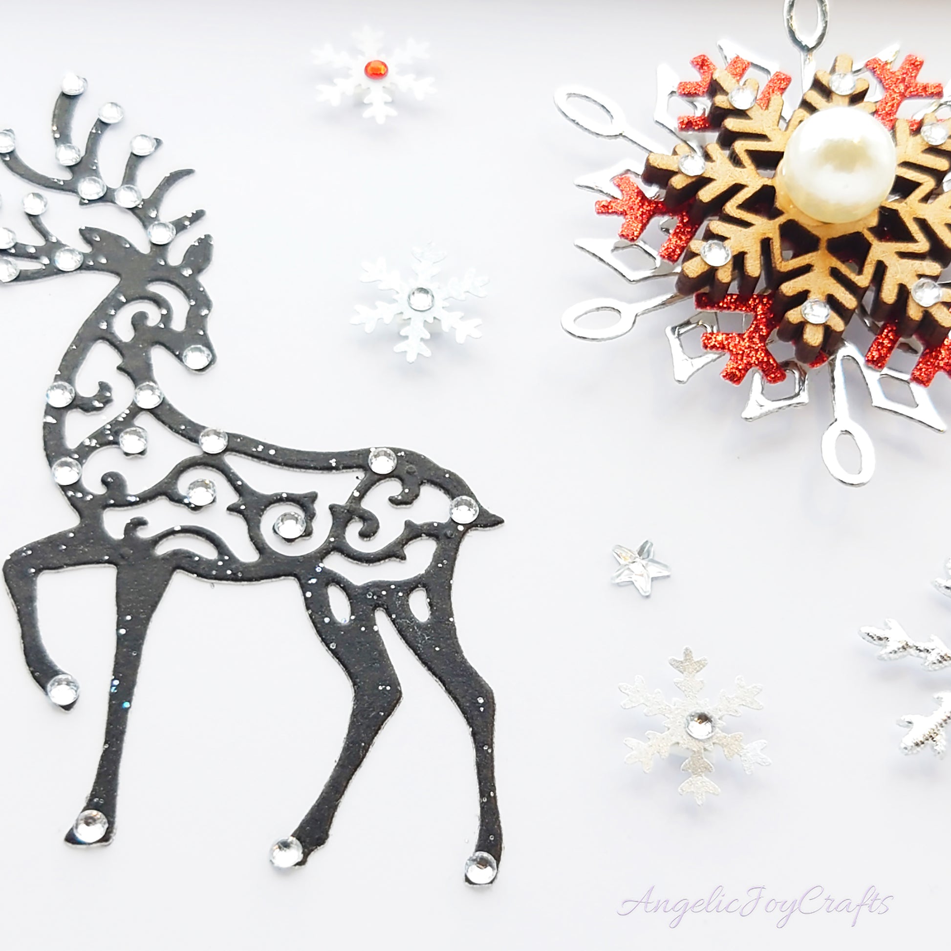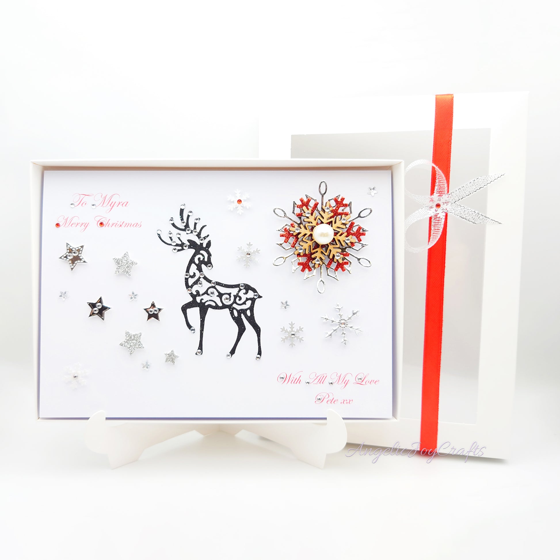 Handmade Personalised 3D Christmas Card with Deer & Wooden Snowflake + Complimentary Gift Box | Christmas | Noel | New Year
