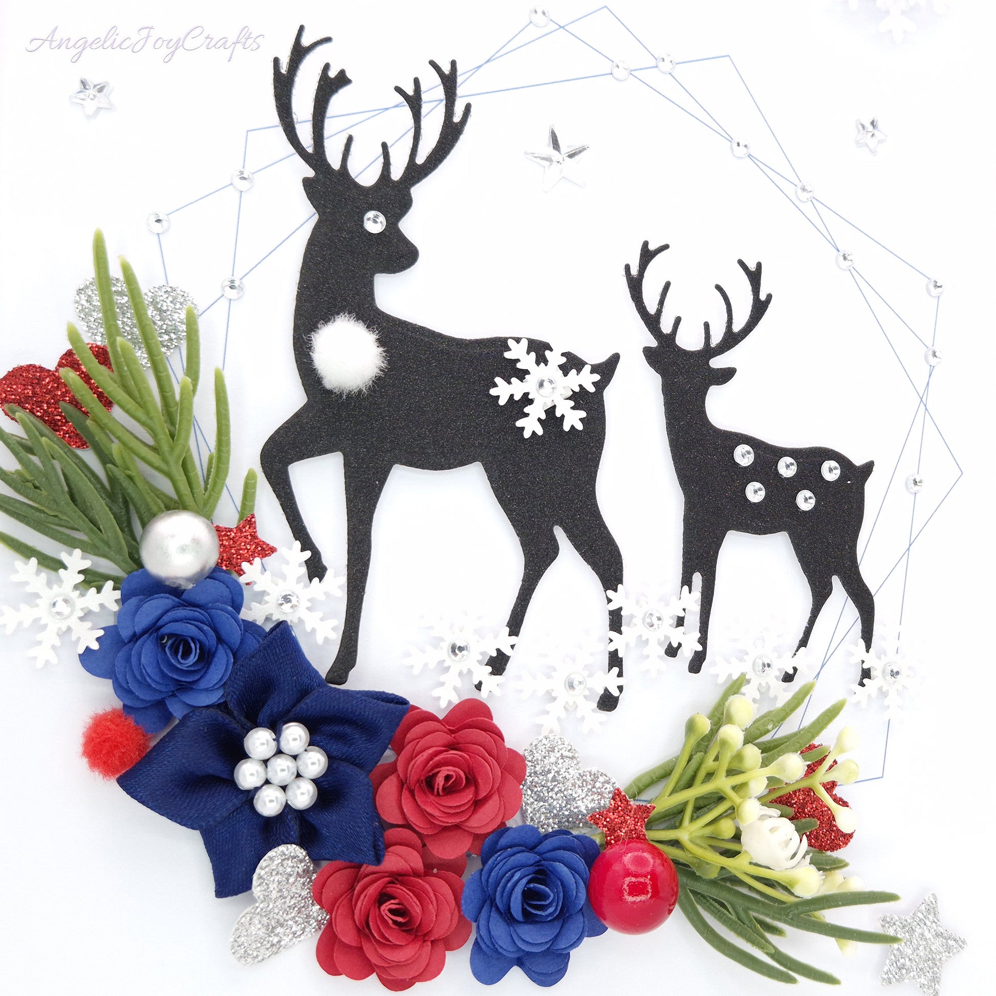 Handmade Personalised 3D Christmas Card with Flowers & Bucks + Complimentary Gift Box | Christmas | Noel | New Year
