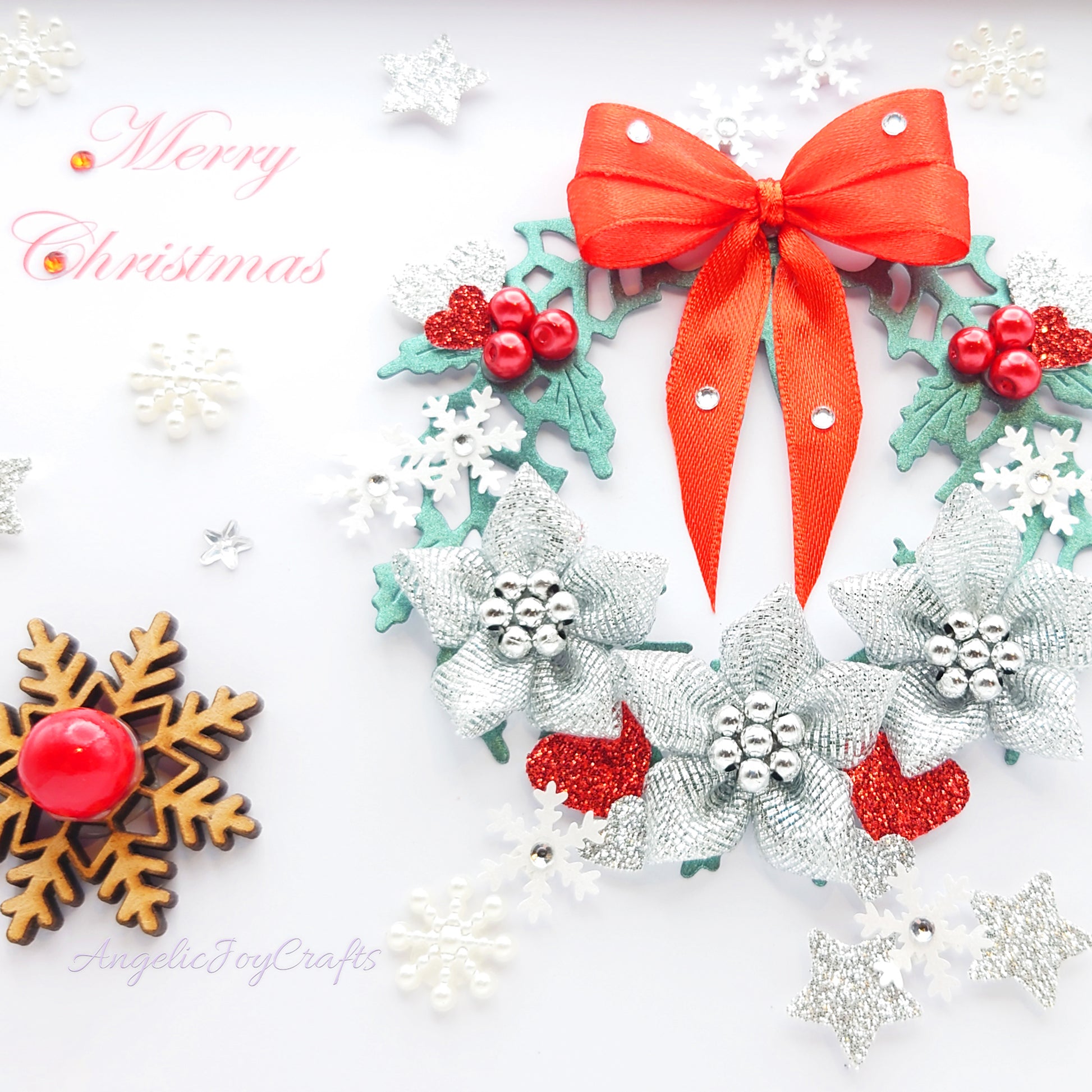 Handmade Personalised 3D Christmas Card with Ornate Wreath & Wooden Snowflakes + Complimentary Gift Box | Christmas | Noel | New Year