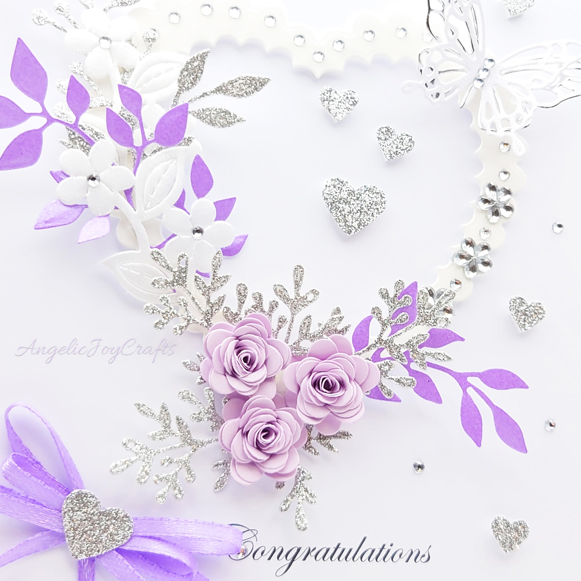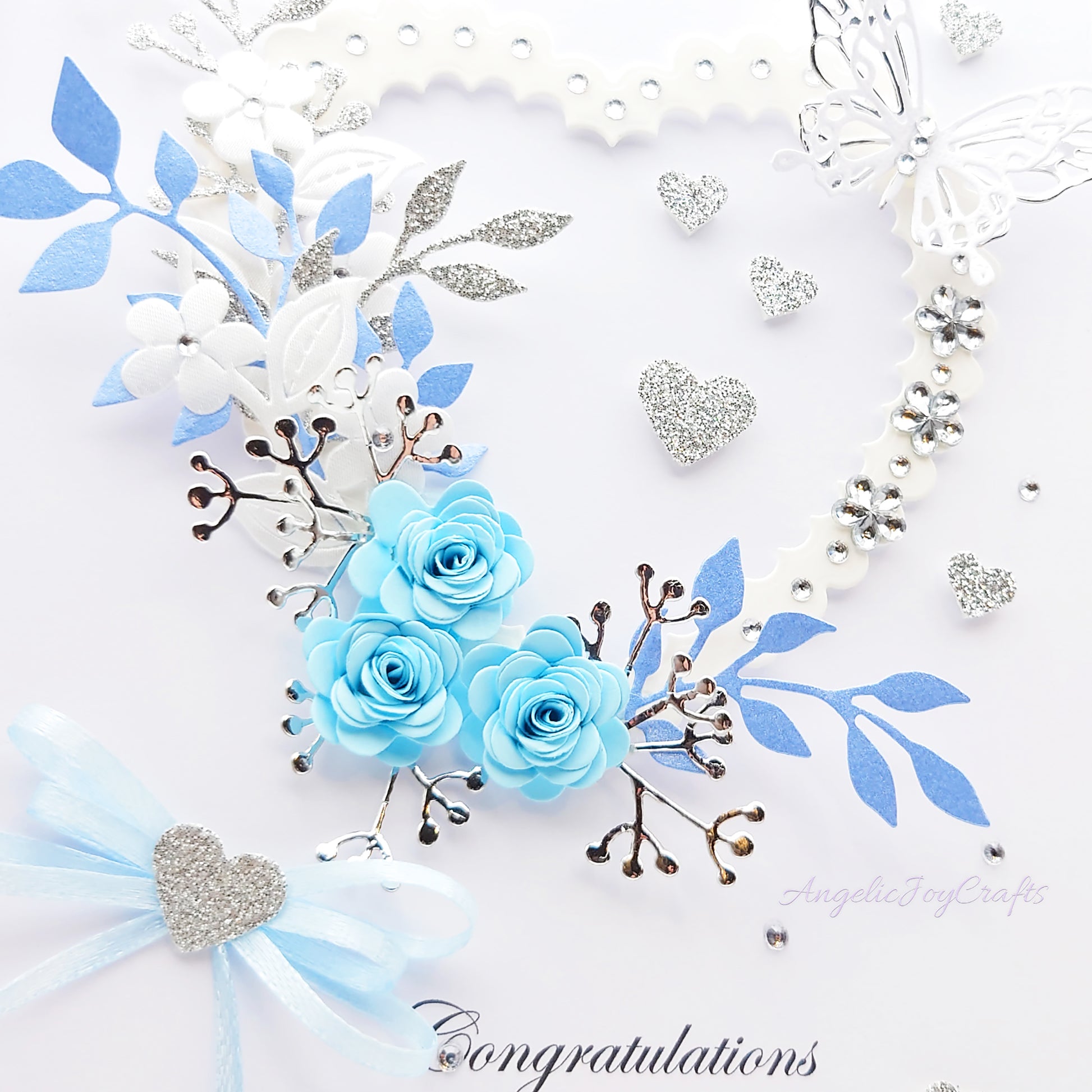 Handmade Personalised 3D Engagement Card with Floral Heart, Bow & Butterfly + Complimentary Gift Box | Anniversary | Wedding | Engagement