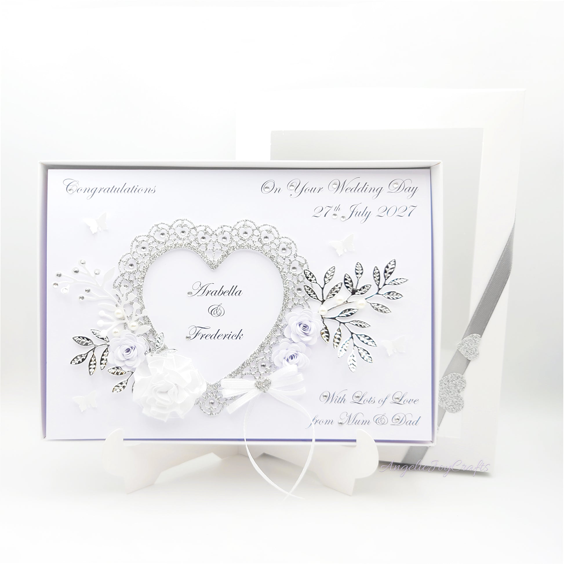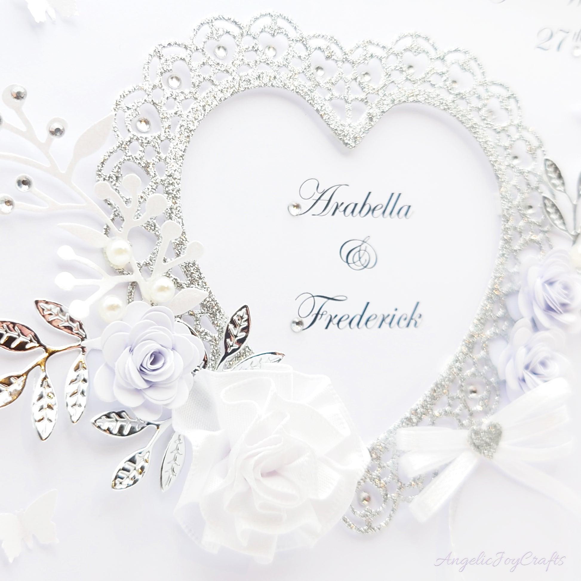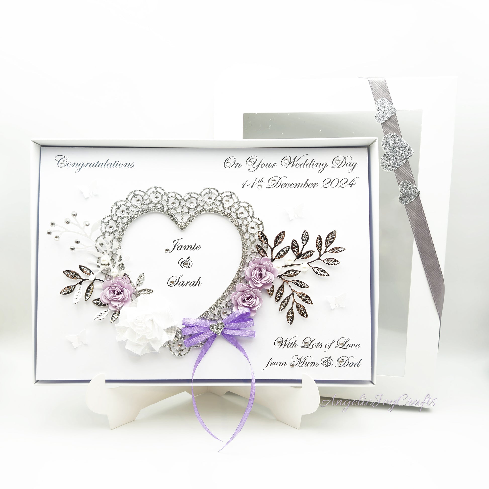 Handmade Personalised 3D Engagement Card with Ornate Floral Heart & Bow + Complimentary Gift Box | Anniversary | Wedding | Engagement