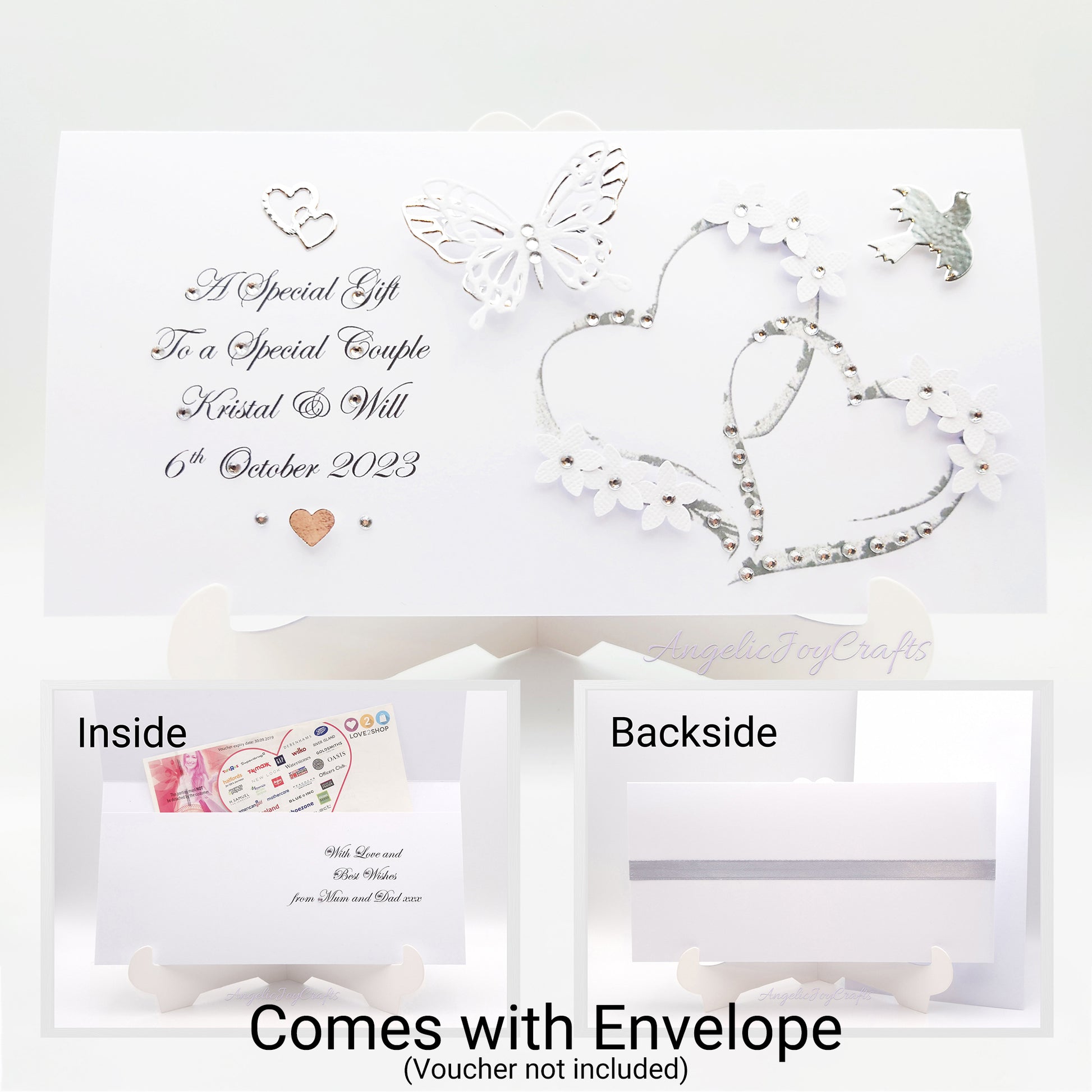 Handmade Personalised 3D Gift Wallet with a Hearts & Butterfly + Complimentary Envelope | Gift Wallet