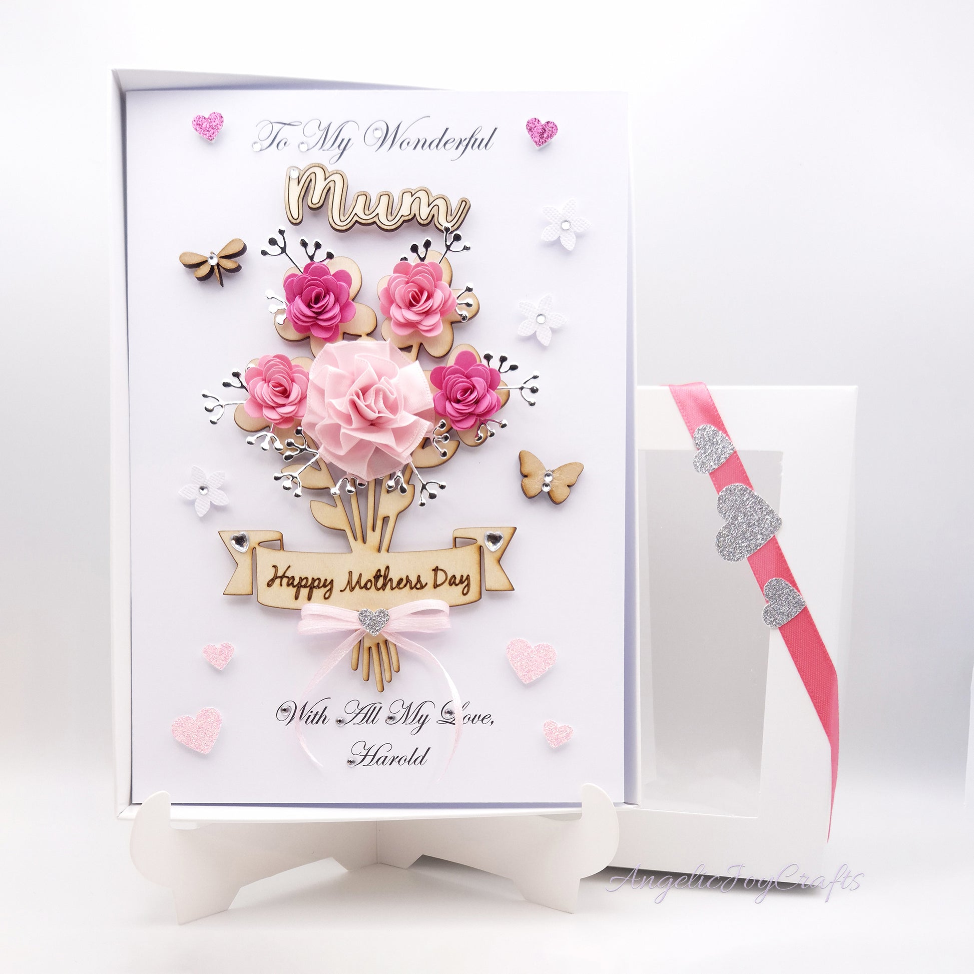 Handmade Personalised 3D Mother's Day Card with Flower Bouquet & Engraved Name + Complimentary Gift Box | Birthday