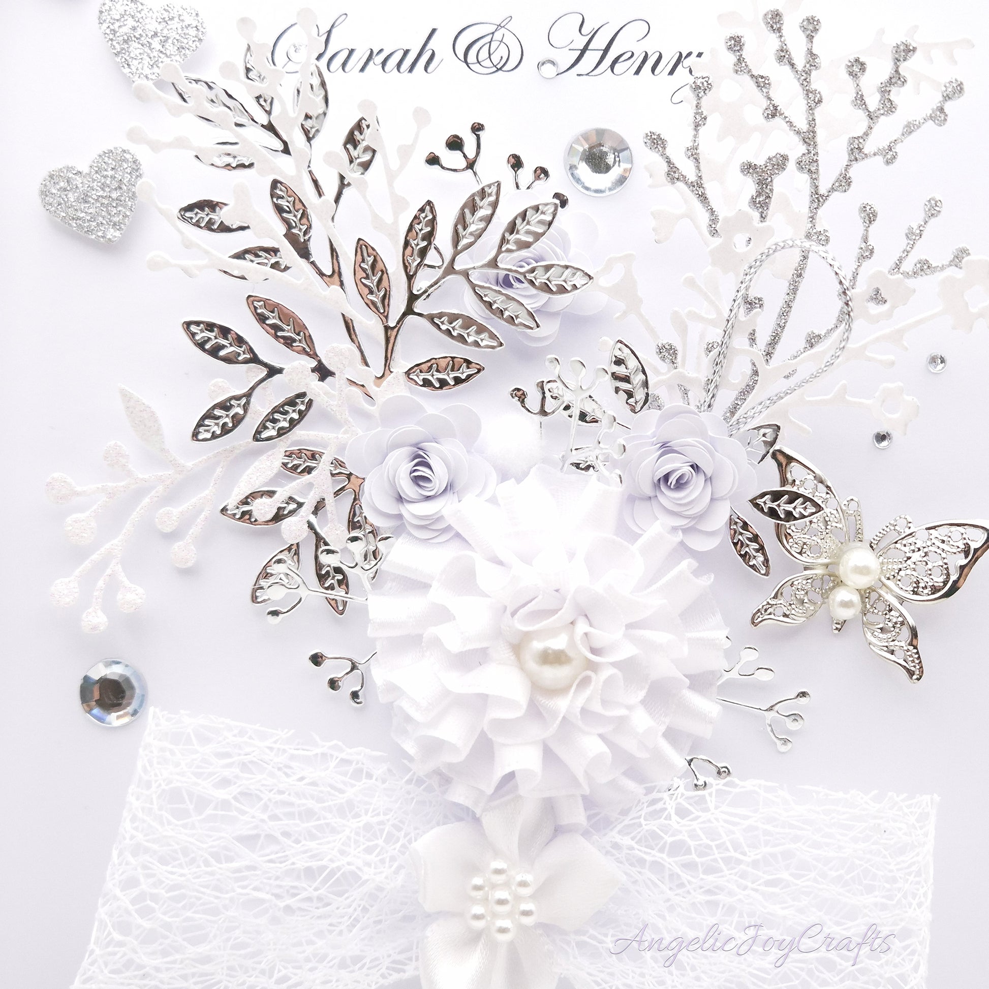 Handmade Personalised 3D Wedding Card with Bow & Floral Bush + Complimentary Gift Box | Anniversary | Engagement