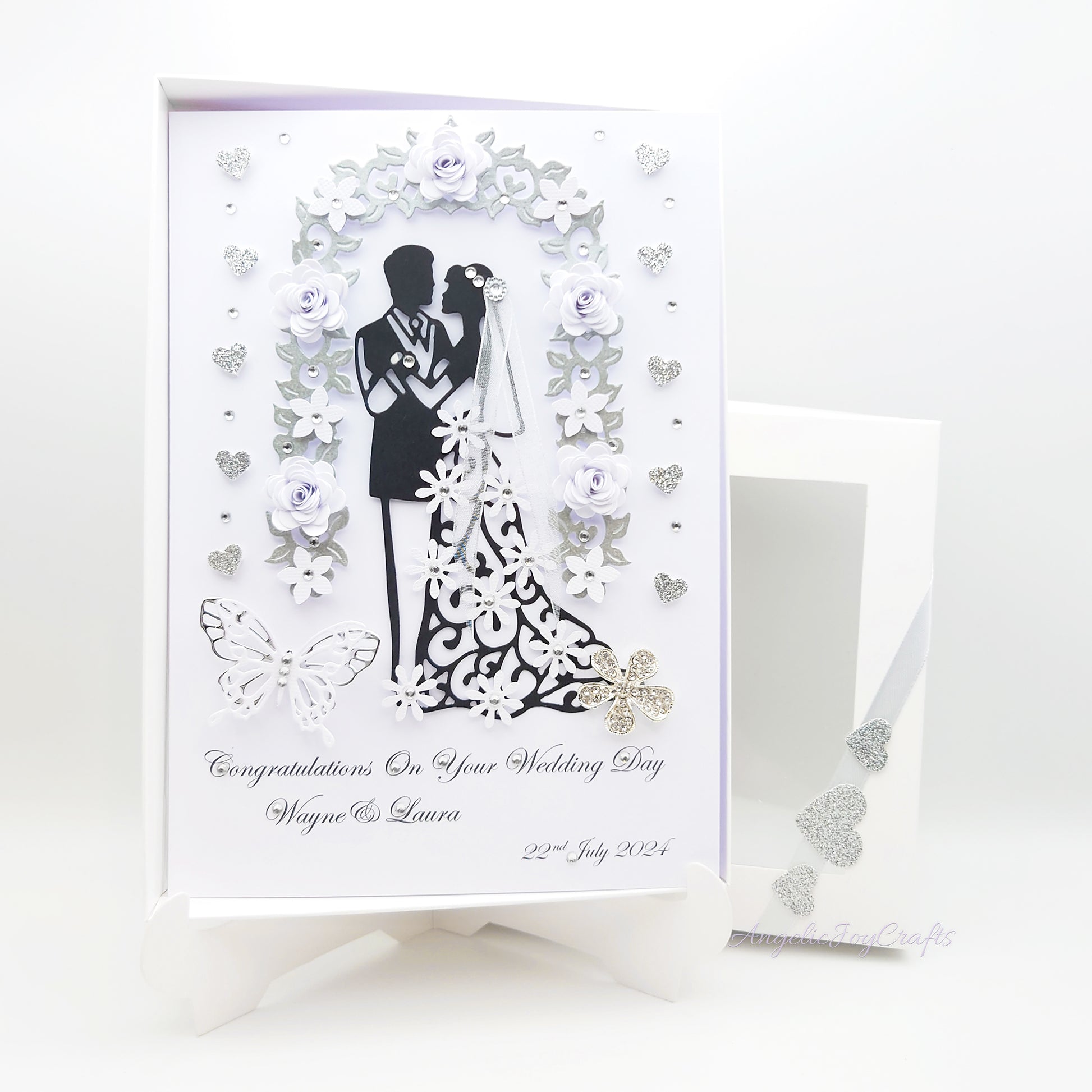 Handmade Personalised 3D Wedding Card with Couple in Floral Arch + Complimentary Gift Box | Anniversary | Wedding | Engagement