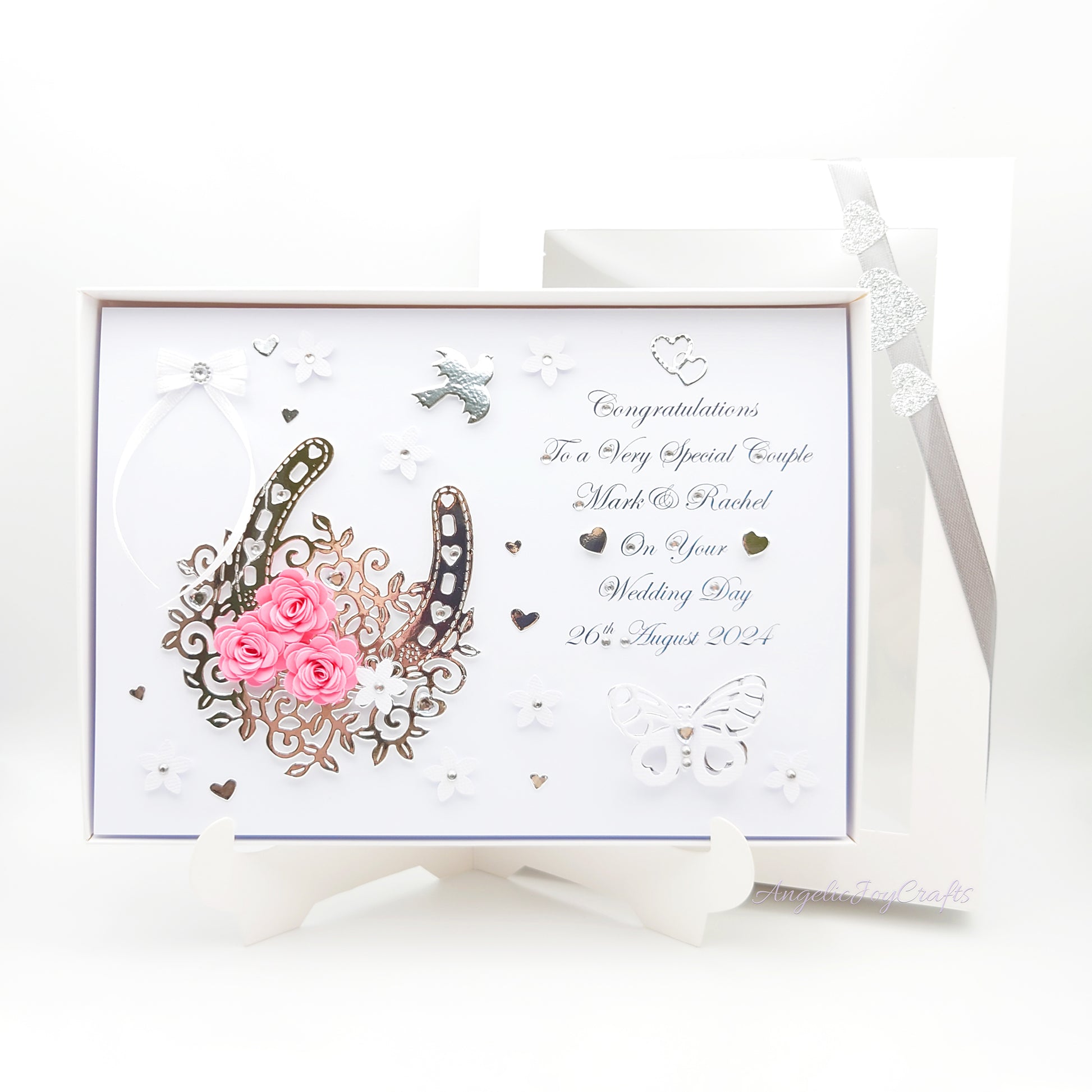 Handmade Personalised 3D Wedding Card with Lucky Floral Horseshoe + Complimentary Gift Box | Anniversary | Wedding | Engagement