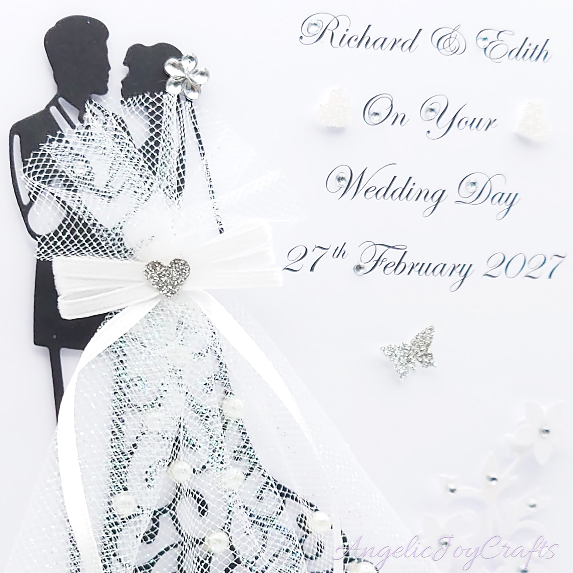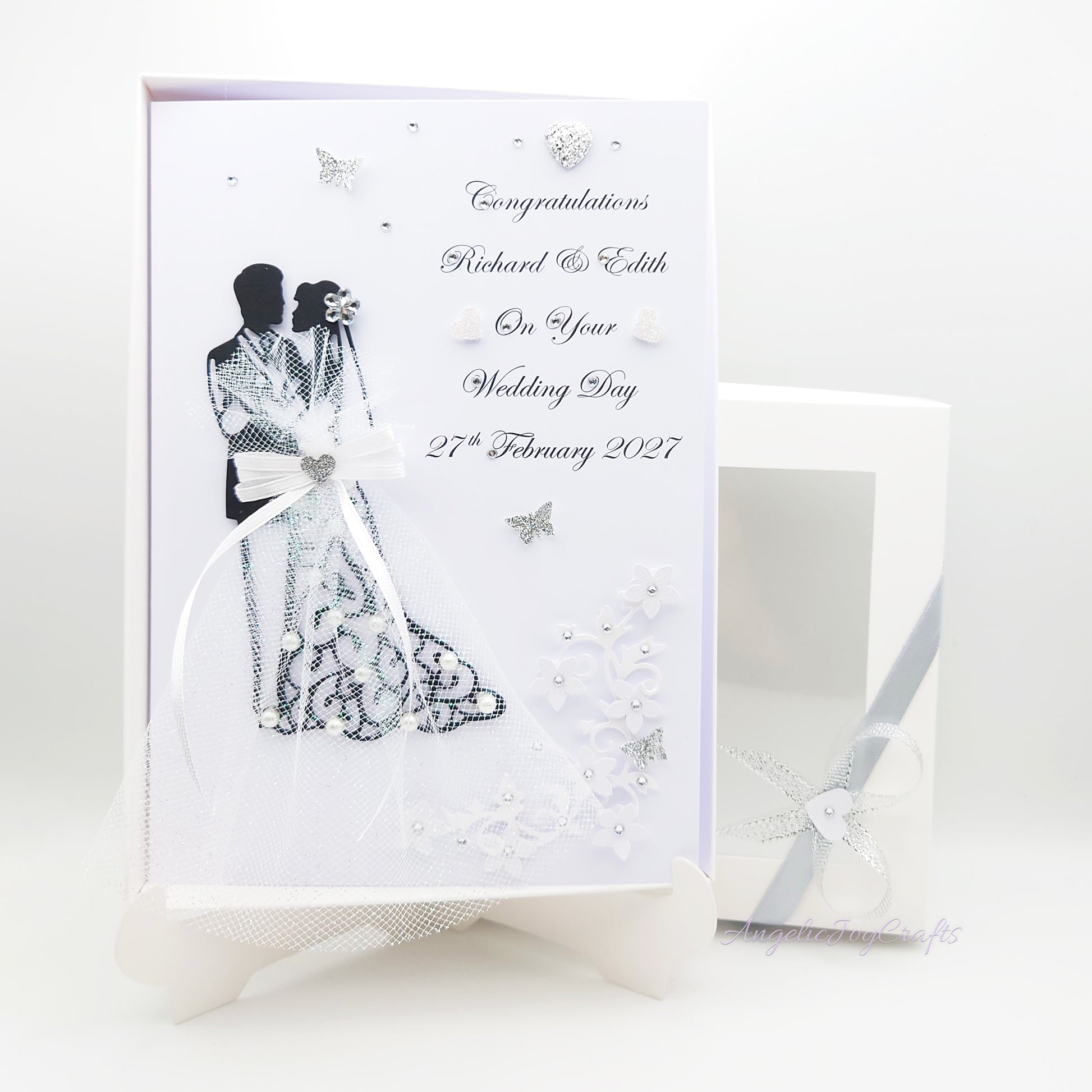 Handmade Personalised 3D Wedding Card with Sparkly Dress + Complimentary Gift Box | Anniversary | Wedding | Engagement