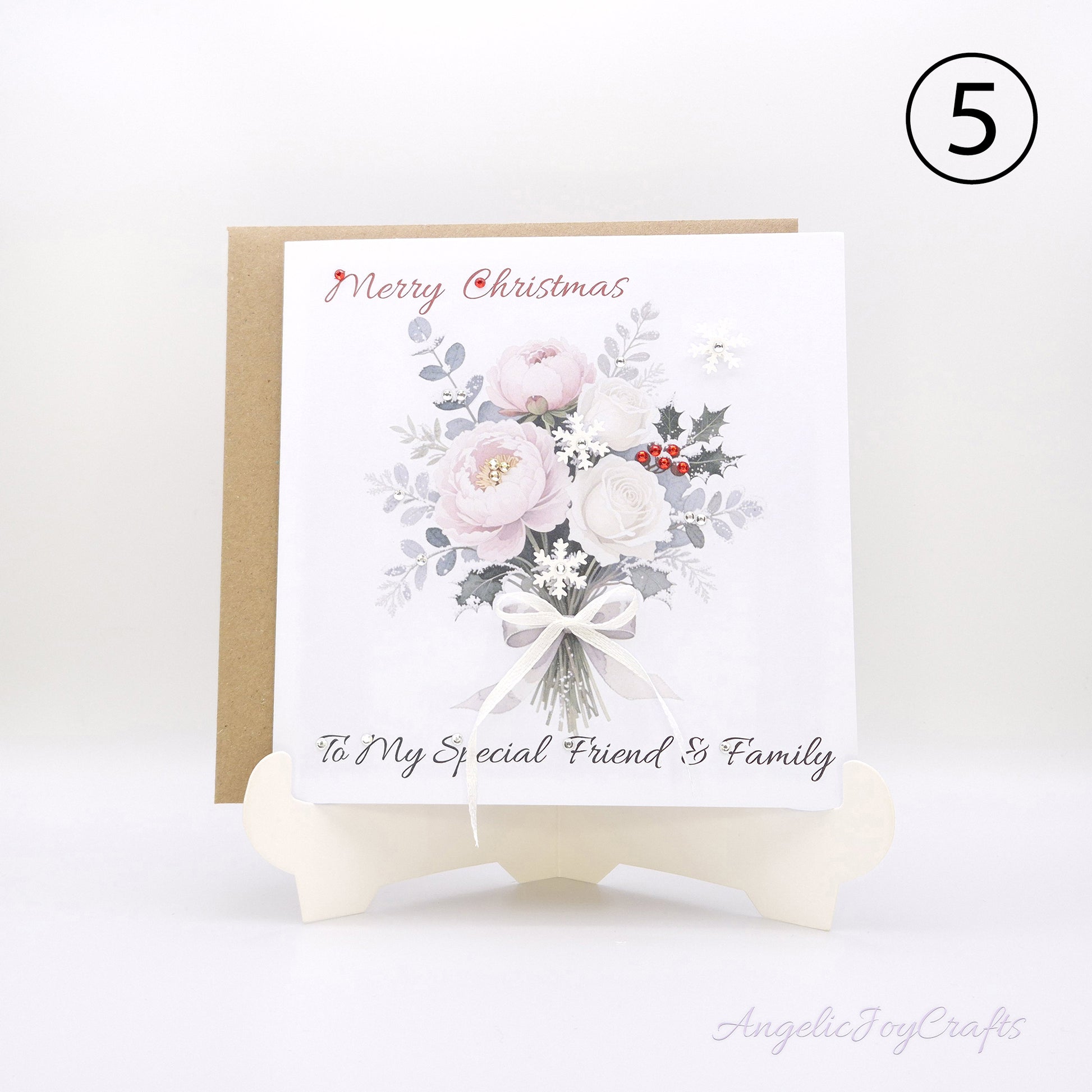 Handmade Personalised Christmas Card with Christmas Vintage Bouquet + Complimentary Envelope | Christmas | Noel | New Year