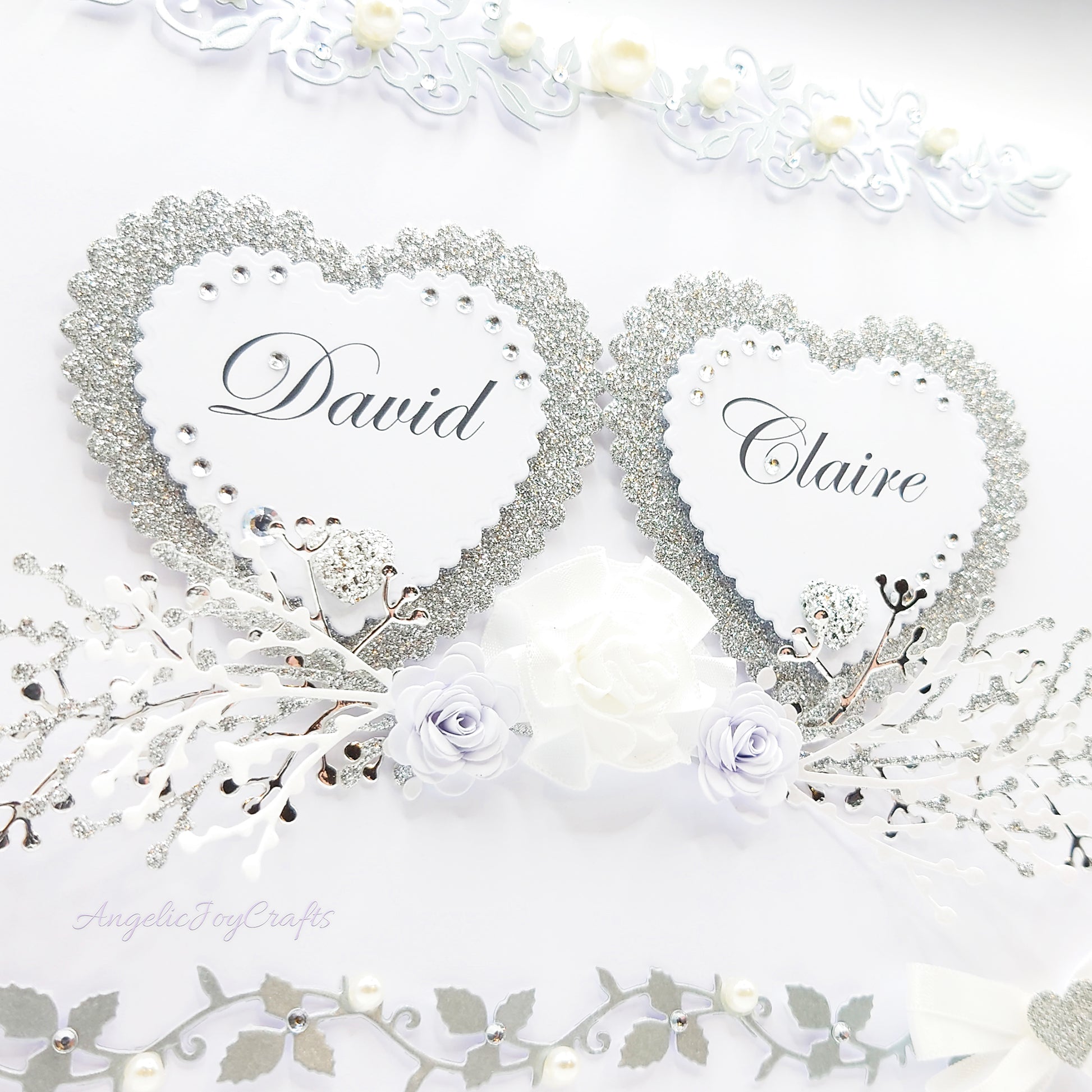 Large A4 Handmade Personalised 3D Wedding Card with Hearts & Floral Branches + Complimentary Gift Box | Anniversary | Wedding | Engagement